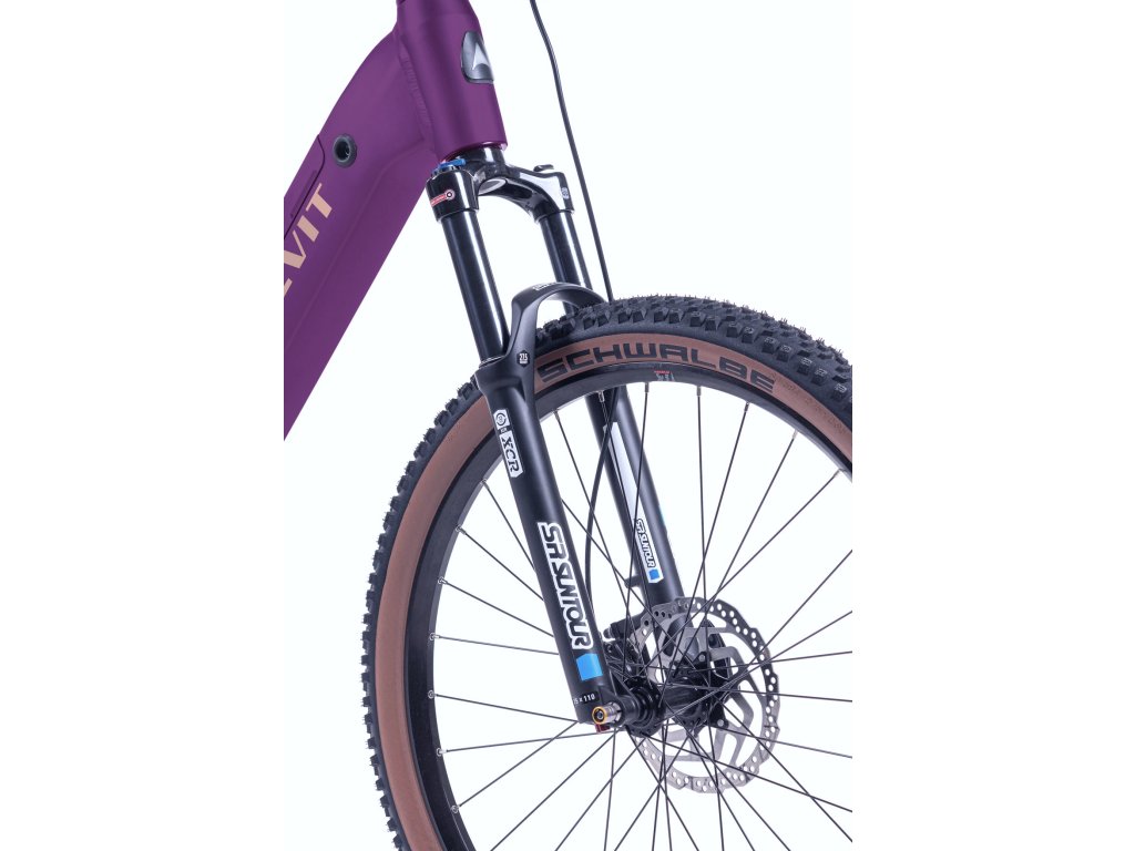 Discover power and versatility with the LEVIT RIVERO electric bike, designed for riders seeking reliability and performance on any road. The powerful motor with 90Nm of torque effortlessly conquers even challenging climbs, while the sleek design is ensured by integrating the Bowden cables directly into the head tube. The bike features an SR Suntour XCR32 Boost LOR air fork for a comfortable off-road ride and RODI TRYP 30 tubeless rims with Schwalbe Smart Sam Skinwall tires for optimal grip. The illuminated logo accentuates the modern design.